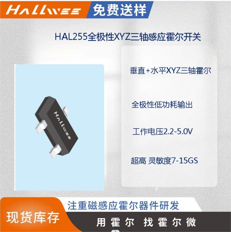 HAL255是⼀款基于垂直+水平霍尔技术的全极性输出低功耗霍尔效应传感器,能够同时检测X、Y、Z三轴⽅向的磁场,利用先进的斩波稳定技术,因而能够提供准确而稳定的磁开关点。